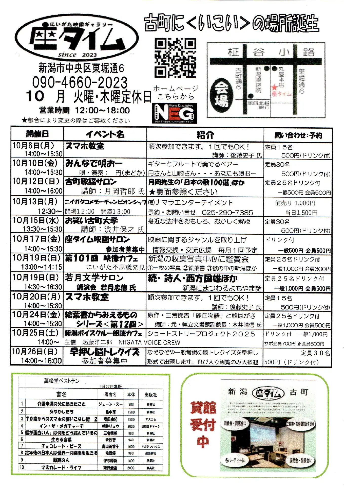 ★今月は「ニイガタコメデーチャンピオンシップ」「早押し脳トレクイズ」がと登場。3か月振りに「朗読カフェ」もあります。」お友達を誘ってお越しください。